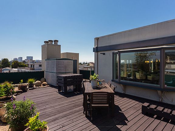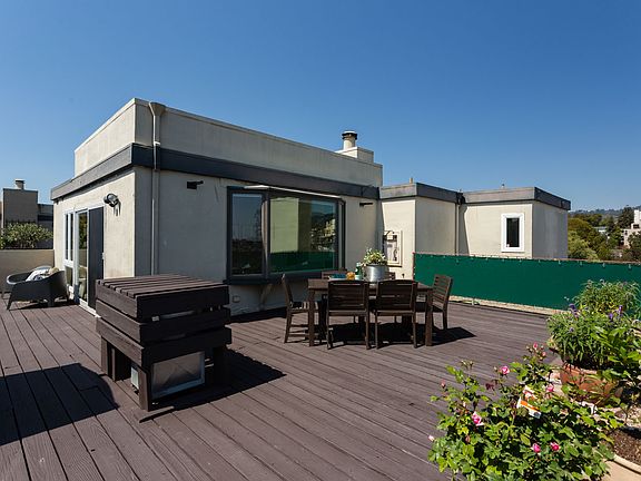 Naturally bright and spacious, this lovely penthouse with panoramic views and large private roof deck is a wonderful place to call home. Located in the delightful Rose Garden neighborhood, this sun-drenched top floor unit shares no walls with any other unit, has beautifully updated bathrooms, bamboo floors, wood burning fireplace, gated parking and deeded storage space. The private roof deck has expansive panoramic views of the bridges, the Bay and downtown San Francisco and an automatic drip system for your green thumb! The complex is a well maintained building with pool, sauna, gym and elevator. Walking distance to Lake Merritt, Grand Ave, Lakeshore and Piedmont Avenue shopping districts.