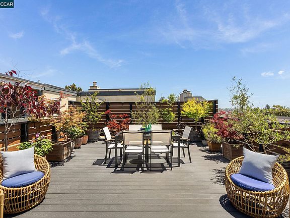 Welcome to your urban rooftop oasis in the heart of Oakland! This penthouse gem offers a rare blend of privacy and panoramic views. Boasting 2 bedrooms and 1 bathroom, a gourmet kitchen with high-end appliances this chic residence features a spacious and fully landscaped deck plus a large balcony ideal for soaking in the cityscape and Oakland hills vistas. With no shared walls, tranquility reigns supreme. Your comfort is paramount with a gated parking and on-site management ensuring security. Nestled near Piedmont, the Morcom Rose Garden, and Lake Merritt, experience the best of Oakland living.