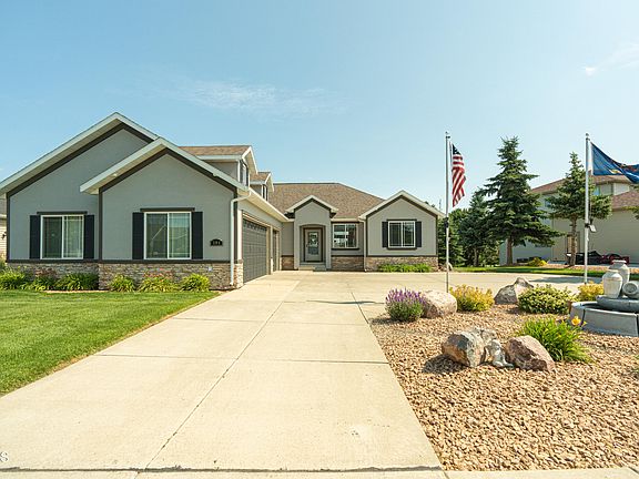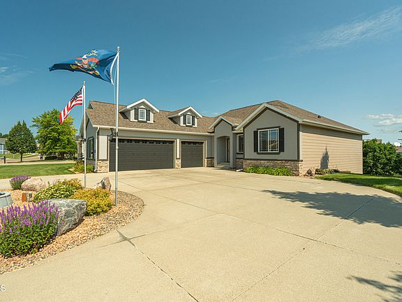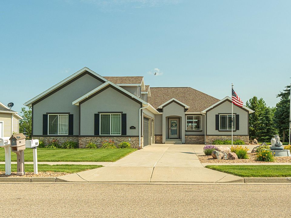 Do you want a beautiful home with an incredible view? This is the ONE you've been waiting for! This beautiful ranch style home is in desirable North Bismarck offers 4 bedrooms and 4 bathrooms with 3,473 sq ft of finished living space. The backyard boasts stunning views with no neighbors directly behind, providing a peaceful setting to relax and enjoy the outdoors. The main floor features a home office right off the entryway, perfect for those who work from home or need a quiet space to study. The main floor laundry makes chores a breeze, while the three bedrooms and three bathrooms also on the main level offer plenty of space for everyone to enjoy. The formal and informal dining areas are perfect for hosting dinner parties or enjoying a meal with loved ones, while gazing at your beautiful view through your large windows that also add an abundance of natural light to the home. Access to the backyard deck allows for easy outdoor entertaining as well. The primary bedroom is a true retreat, with a private bathroom featuring a walk-in shower, soaker tub, and walk-in closet. The stunning walk-out basement of this home is perfect for hosting movie nights or game days, with a spacious family room, an additional bedroom, a bathroom, a large bonus room & so much more! Tons of storage space and a large triple garage that is plumbed for a heater providing comfort, convenience and functionality. This home boasts great curb appeal, is in a wonderful north Bismarck location, and has a nice layout that sets it apart from cookie-cutter homes. Don't miss your opportunity to own this beautiful property and TURN YOUR DREAMS INTO AN ADDRESS... Call TODAY!