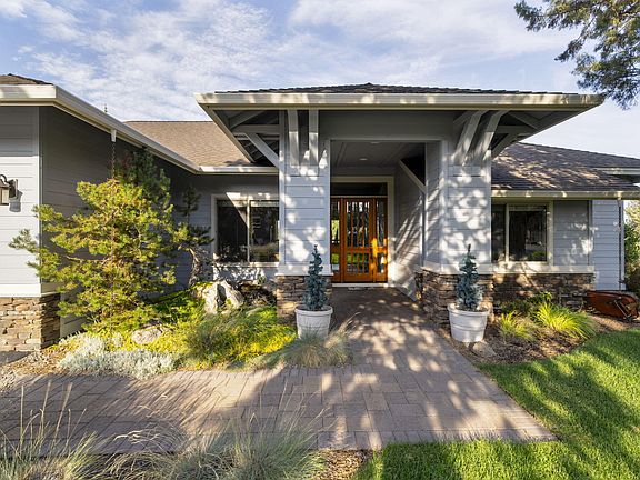 This beautiful, single story home is immaculate! Featuring many high quality features throughout, like travertine countertops, sturdy maple hardwood floors, and a heated three-car garage. The open great room floor plan includes a large dining room, built in cabinetry, fireplace and floor to ceiling windows. The kitchen has stainless steel appliances, custom wood cabinets with easy slide-out shelves, large island and fantastic views of the golf course. Each room has its own heating and cooling settings for comfort. Recent updates include a new Whirlpool dishwasher and microwave. Outside, there's a large patio with incredible golf course views and a Pergola that's perfect for relaxing or entertaining. This gorgeous home is located in The Falls, a 55+ community with its own clubhouse and access to all the amenities at Eagle Crest. It's move-in ready and feels brand new!