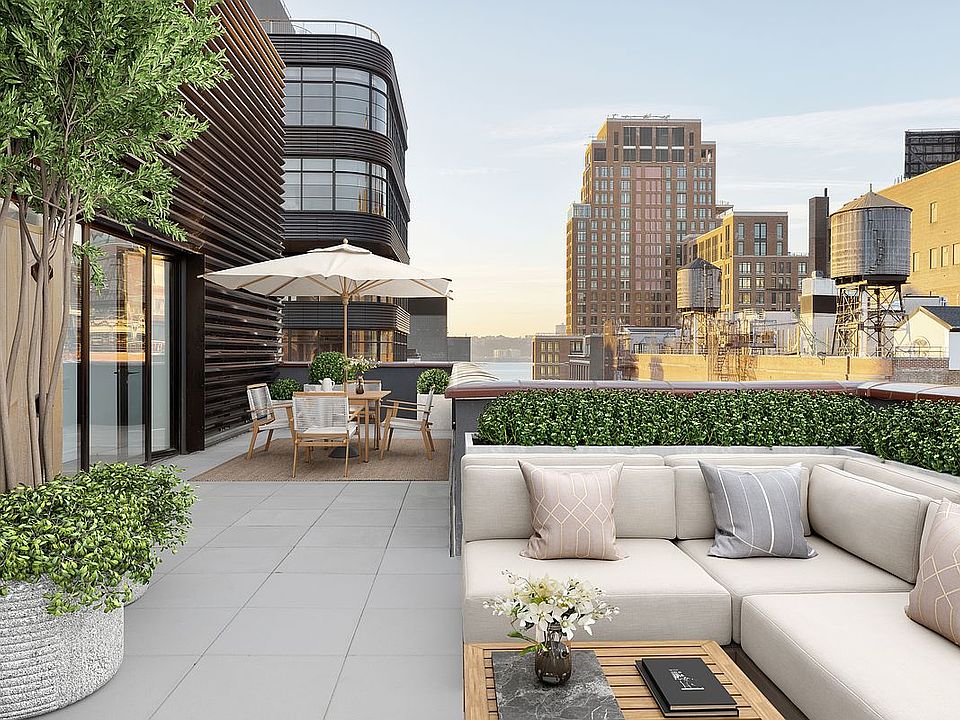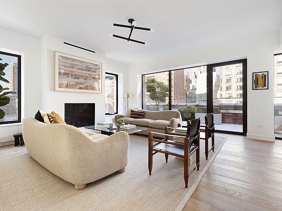 A stairway (or the elevator) leads you to the 833sf private roof terrace, a magical setting for al fresco dining and entertaining with an outdoor fireplace and Grill. This surprisingly quiet, corner 3-bedroom, 3.5 bathroom duplex boasts perfect proportioning with over 3,000sf of interior living space with light-filled Western and Northern exposures. Oversized in-swing aluminum casement windows overlooking West 22nd Street and ducted central air conditioning, and white oak plank flooring with a natural finish and band sawn texture feature throughout.