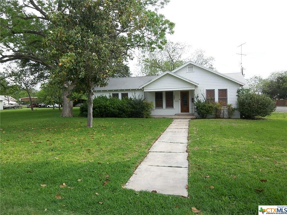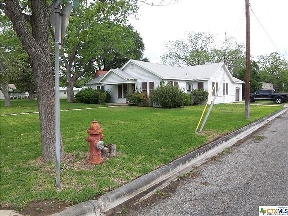 Nice 3/2 home with 1,815 sq. ft. on a corner with 5 lots. Metal roof, kitchen and dining room have new floors and fresh paint, large master bedroom with master bath, shower only. Large living room with hardwood floor and wood burning fire place. Plantation shutters throughout the home, A/C 2 year old, separate shop area with covered porch and covered parking for a RV and boat. Alley on one side, 1 car garage, well and sprinkler system for entire yard. Lots 4,5 adjoin the home and have several large pecan trees, some which are grafted. Priced to sell, call today.