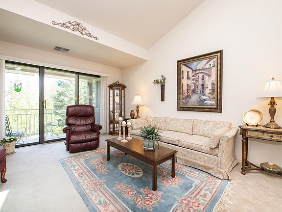 Sunny and bright upper unit with loads of living space, storage and ample closets. Private entry with private attached garage. 2 spacious bedrooms both with walk in closets. Vaulted great room with skylights has access to the porch. Eat in kitchen, private laundry room with full size side by side washer & dryer. The den or bonus space is always a plus. Updates include: Furnace / Central Air: 2011, New Roof 2017; Rebuilt skylights 2017. This complex is financially secure with professional management. 1 cat permitted no dogs on the second floor.