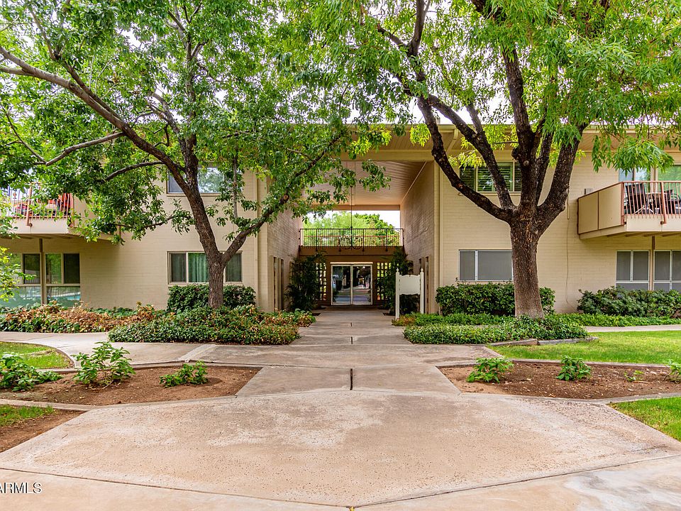 Wonderful Mid Century Co-Op in Central Phoenix. Enter into a plush, well groomed community that is absolutely charming. Walking paths throughout surrounded by lush vegetation including a community garden, fruit trees and beautiful flowers. Heated pool, community center and other gathering areas. This 1 bedroom 1 bath condo is the perfect lock and leave as it's tastefully furnished which can be negotiated. Updates include newer windows, A/C unit, updated bathroom, ceilings and floors. Wonderful patio to relax and have your morning coffee or a glass of wine. Unit is light and bright. Assigned parking and large storage unit in the rear of the property. Indoor cats are allowed. Located in the heart of Phoenix with easy access to the Light Rail and other public transportation. Walking distance to the iconic Clarendon Hotel with its popular bars and restaurants. Located near Phoenix Art Museum, renowned Heard Museum, Melrose Shopping District, Chase Ball Park, Phoenix Suns Arena, art galleries and a large library. Hurry this one will go fast!