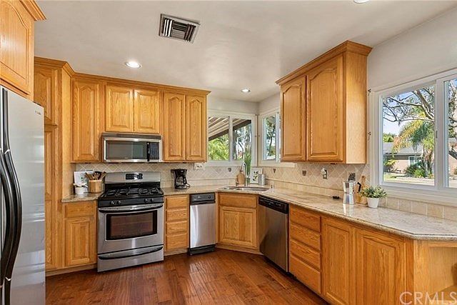 Fully upgraded single story home in quiet Fullerton neighborhood. With over 1,300 square feet (plus 288 attached sun room) this lovely 3 bedrooms, 2 bath home has it all. The recently updated chef's kitchen features Granite Counters, Hard Wood floors, custom cabinets and stainless-steel appliances, including a gas range, microwave, trash compactor, dishwasher and refrigerator plus a large pantry for extra storage. The huge master suite includes a private bathroom and 2 separate closets. An exceptional extra is the giant 12' x 24' enclosed sunroom (not included in square footage), and additional covered patio. This home features a new roof, dual pane windows, fresh interior paint, updated bathrooms, central A/C & Heating system. Wood burning fireplace. Hardwood floors, crown molding, smooth textured ceilings, recessed lighting, ceiling fans. 2 car attached garage with automatic opener, work bench, cabinets, additional storage and utility sink, plus a storage shed and gated RV parking.