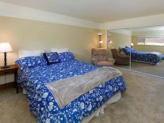 Single story townhome with no one above or below in desirable Willow Park complex. Large living room with tile floors, recessed lighting, fireplace with tile hearth and sliding glass doors to the private deck backyard. Open kitchen with breakfast bar, granite counters, skylight, stainless appliances and ample cabinet space. Separate dining area with floor to ceiling windows. Generous size bedroom with mirrored closet doors and plush neutral carpeting. Full bathroom with granite counter vanity, shower over tub and tile surround. Desirable complex complete with swimming pool and club house. Convenient to downtown Mountain View, shopping, Stevens Creek Trail, freeway and expressway access.