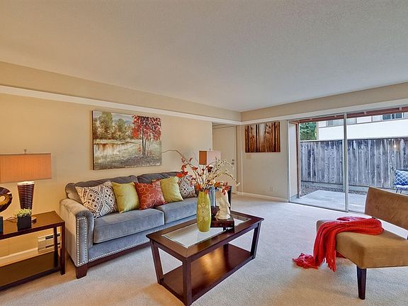 Single level townhome with no one above or below. Spacious open floorplan with fresh paint, laminate flooring, remodeled kitchen and bathroom, travertine entry & fireplace. Light & bright-ready to move in. Living room features entire wall of windows. Convenient location close to Google & the heart of Silicon Valley. Just a few blocks to downtown Mountain View, CalTrain, LightRail. Complex features include pool & clubhouse.