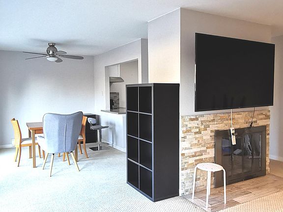 Commuter's dream! Close to downtown Mountain View, Stevens Creek Trail, Caltrain, Google, LinkedIn, and much more. Enjoy the resort style living at its best with the complex's pool, sauna, clubhouse and ample guest parking. This beautiful home features a bright kitchen with skylight, new cabinetry, custom quartz counters, glass tile backsplash, tile floor and a breakfast bar! Come home and unwind in the spacious living room with a stone faced wood-burning fireplace. Separate dining area with floor to ceiling windows bringing in spades of light leading to the private deck. Generously oversized bedrooms with ample closet space and new closet doors. Both baths have been exquisitely updated to include, sun tunnel, recessed lighting, new cabinetry and custom quartz counters.