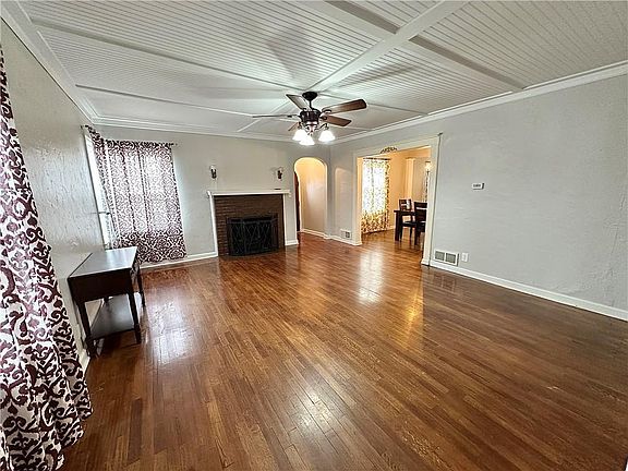 Irresistibly Charming 3 BD, 1 BA home, beautiful hardwood floors throughout most of the house, fireplace in LR, kitchen w/eating bar, stainless steel appliances stay (stove, refrigerator, dishwasher & microwave), the bedrooms are all spacious, the master bedroom has an area perfect for a desk or a reading nook, bathroom has a tiled shower over tub, large laundry room, unfinished basement, attached garage plus a detached garage/workshop, fenced in yard, deck w/ pergola, thermal windows, newer interior paint & fixtures, move in ready!!