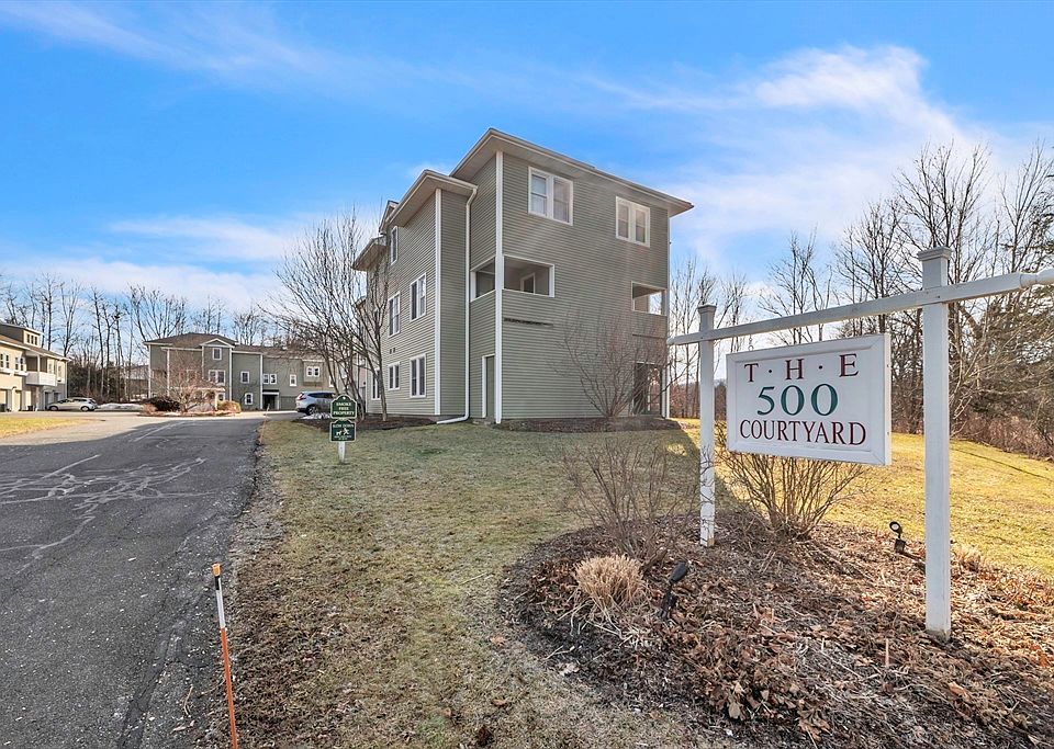 Spacious sun-filled 2 bedroom at The Courtyard Condominiums. This 2 bedroom, 1.5 bath garden style unit is on the second level and has maple hardwood floors. The bedrooms are large and both carpeted and feature walk-in closets! In 2023 a new complete HVAC system including central air was done. Other bonuses include two garage spaces, a separate in-unit laundry space, and that open floor plan that buyers love! Enjoy morning coffee or evening cocktails on the private south-facing covered balcony off the dining room. The condo complex is well maintained with recent improvements, including vinyl siding, roof, driveway & stairwells. It is located on the PVTA bus line minutes to Hadley shops, colleges, conservation areas, and universities, and just 2.4 miles from all that downtown Amherst has to offer! You'll have two garages and one additional deeded parking space.