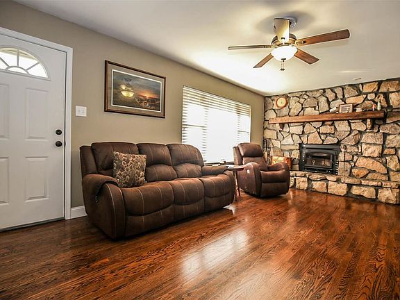 Recently remodeled 2 Bed home with 2-car garage and large level fenced yard. The living room has a wood burning floor to ceiling stone fireplace. Wood flooring throughout bedrooms & main rooms, wainscot walls in dining room, and updated lighting on the main level. Ceramic tile in updated kitchen with newer cabinets, lighting, solid counters and stainless steel appliances. Large deck leads to the large fenced yard with 2 enormous oak trees. Master bedroom and 2nd bedroom both feature ceiling fans and large double closets. Hall bath has a tiled tub/shower combo, new hardware, cabinetry, and lighting. Basement is partially finished with a full bath with tile flooring. The 2-car garage has entrance to home as well as a separate door leading to the backyard.
