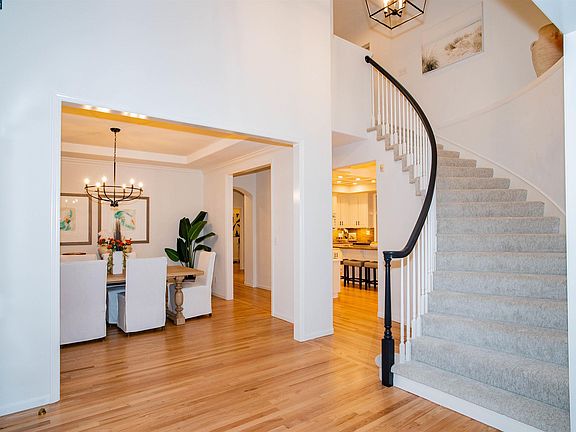 The front door of this Rancho Paraiso gem welcomes you into an impressive entry with spacious living concept. As you flow from room to room, newly refinished hardwood floors dance with abundant natural light from the multiple windows providing spectacular views of the lush green surroundings. The large chef’s kitchen boasts a new cooktop, custom cabinets, granite countertops, & a palatial island opening into an eat-in area & charming family room, ideal for intimate dinners to grand affairs. The formal living room with additional fireplace, & formal dining room, offer more places to cozy up, gather, and entertain. A cinematic spiral staircase leads to the 2nd floor primary retreat with spa-like ensuite bathroom & large walk-in closet, as well as 2 additional upstairs bedrooms with Jack & Jill bathroom. Delight in the park-like backyard sanctuary replete with a sparkling pool with dazzling spillways, cascading gardens, mature trees, sitting & meditation areas under a redwood pergola with deck, a romantic swing, and a large patio for dining alfresco under the stars! Minutes from top-rated Northgate schools, beautiful Arbolado Park, 2 of Walnut Creek’s best shopping centers, restaurants, gyms, swim clubs, Boundary Oaks golf course, & Mt. Diablo State Park. Welcome home!