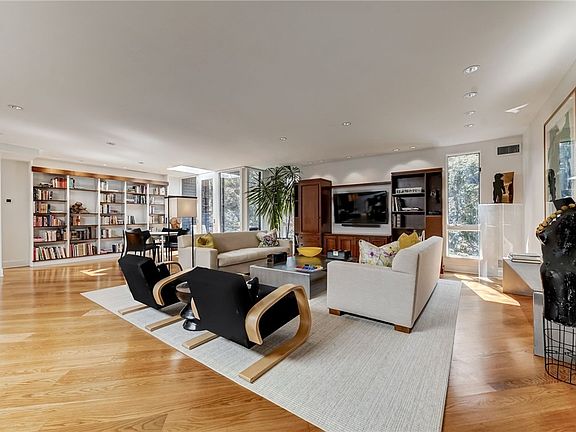 Welcome to this gorgeous and move-in ready corner unit in the highly sought after 5000 Fifth. This top floor, 2 bed, 2.5 bath is unique to the building, offering privacy without neighboring units on either side. Multiple skylights bring in tons of natural light. Furnishings are by renowned Weisshouse and the original interior architecture by Herb Siegle. Other features include a renovated dine-in kitchen with new stainless steel appliances, large open island with ample storage, screened in aerie, and a cozy office area. The primary features a large walk-in closet and a completely renovated bath with a glass walk-in shower. Additional amenities include in -unit laundry, loaded exercise room, side-by-side parking spaces, personal storage unit, 24 hour security, guest apartment, building manager, and in-house maintenance. Just blocks to restaurants, shopping, hospitals, Universities. A must see.