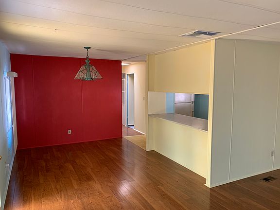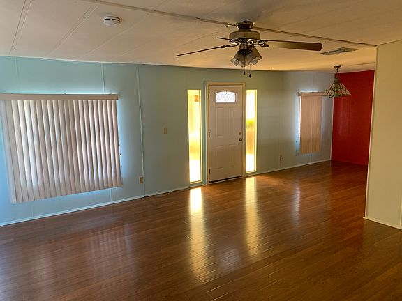 1966 Prestige 20’ X 55’ (1300 sq ft) Three bedrooms two full baths. Smaller bedroom could be a den or office. The other two bedrooms have been enlarged w/extra closet space. Ceiling fans in living room and master bedroom. Breakfast bar. Laminate flooring in all but kitchen, bathrooms and one bedroom. Large porch on front door side. Two sheds with electric washer and dryer in carport side shed. All appliances stay including refrigerator, stove, microwave and washer/dryer. Has central A/C and heat along with 2 evaporative coolers. Low maintenance landscaping.