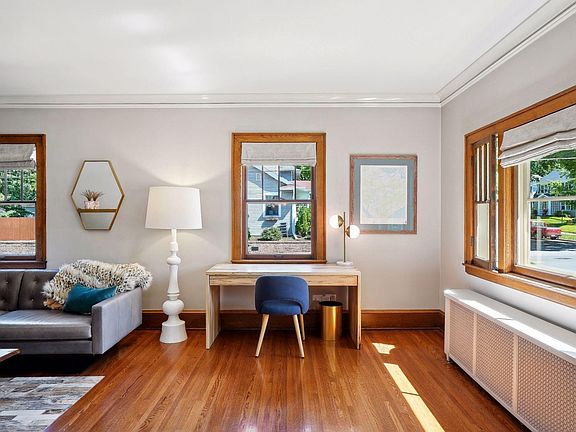 This gorgeous Lynnhurst two story is perfection from the curb side charm to the many updates throughout. Beautifully maintained landscaping blankets the entire yard, including a sprinkler system and privacy fence to set the tone for outdoor entertaining. The light and spacious entry greets you with hardwood floors and guides you through generous rooms. The well appointed kitchen has quartz countertops and newer appliances. Heading upstairs you will be delighted to find a sunroom with flexibility to work as a fifth bedroom, exercise room, office, or family room. Newly installed carpeting, fresh paint, new roof and gutters in 2022, new water main in 2020, new high efficiency boiler and water heater in 2019!