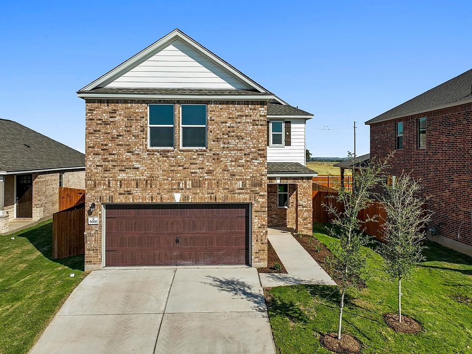 Step into this stunning two-story home featuring a spacious great room, perfect for entertaining. A downstairs bedroom with a full bath makes for the perfect retreat for overnight guests. The kitchen boasts flat panel upper cabinets in Espresso, complemented by Silestone® countertops in Blanco Maple, and a gas range. Ascend to the second floor and discover a versatile loft. Retreat to the primary bedroom with a walk-in closet and adjoining bath complete with a dual sink vanity, relaxing tub and luxurious separate walk-in shower. Enjoy stylish luxury vinyl plank flooring in the living spaces and plush carpet in the loft and bedrooms. Additional features include ceiling fans in the great room and primary bedroom, a smart thermostat, Sherwin-Williams® interior paint, and Moen® fixtures throughout. Relax outdoors on the covered back patio.