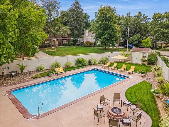 and is 9 1/2 ft deep. Enjoy year round outdoor living watch the game in front of the gas fireplace or have a fire in the fire pit poolside. This sprawling lot is meticulously maintained, and irrigated. Pool shed/pump house and an additional toy shed. Inside you have an enormous charming formal dining room (seating for 14 plus). Gourmet kitchen with Viking range, wine fridge, granite counters. Formal living room with plenty of room for a piano! The great room has a brick gas fireplace with beautiful views of the pool and outdoor living areas. Main floor Primary Suite! The ensuite has a tiled shower, soaking tub, and attached laundry room. Also on the main is a large office with custom built ins (could also be used as another bedroom). Upstairs 2 oversized bedrooms with
