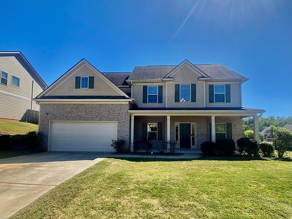 This one has it all! Large corner lot with fenced backyard and views of the Lake and Pool from front yard! This 4 bedroom 2.5 bathroom home is situated on a quiet corner lot in Lexington Hills subdivision. From your front yard you have a beautiful view of the community lake and swimming pool/ clubhouse. As you step in the home you are greeted with a high ceiling foyer that invites you to enjoy the space and comfort this home has to offer. Large kitchen with granite countertops, tile backsplash, island, and stainless steel appliances provides plenty of counter space and is open to the living room for all for your entertaining needs. Separate formal dining room and den. Upstairs you will find the bedrooms. Master is spacious with en suite bathroom and walk in closet. Recently renovated there is a double vanity, tiled shower, and soaking tub perfect for a relaxing evening. The backyard features a covered porch with extended concrete pad making this a great space for gamedays in the fall