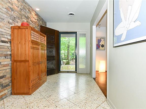 Once in a lifetime opportunity for this stunning mid-century contemporary home! Sleek terrazzo flr greets you in the entry w/a dramatic mosaic stone wall. Richly colored h'dwood flrs come up to the terrazzo floor & usher you into spacious well-appointed rooms. The fabulous great room w/its vaulted wood ceiling meets a 2-stry stone fireplace that looks out through a wall of sliding glass doors to the inviting wooded grounds. Kitchens & primary suites are huge today & this home does not disappoint! The large primary suite's windows flood the room w/light & panoramic views of the lush grounds. The primary bath is a work of art, w/its grand shower & multiple shower heads. In the Chef's kitchen you are surrounded with Corian c'tops on sleek wood cabinets, a JennAir range/grille, & an amazing green house of windows in front of & above the sink. This delightful home enjoys an office, a lrg strge room, and is 1 block from Hamilton Lakes trails. Owners have employed many sustainability efforts