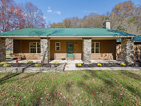Beautiful Country Ranch Paradise Nestled on 13.73 Acres (3 Parcels Included) in Boone County! This 3 bedroom home has so much to offer, especially if you are looking for a private, serene, lifestyle. Enjoy those cozy winter nights in front of your wood burning fireplace with a buck stove insert, or those summer afternoons on your enclosed back patio complete with sky lights and a ceiling fan. The covered front porch has stunning rock columns and is perfect for those mornings that you just want to sit on your porch swing and become one with nature. Not only does this home have cathedral ceilings in the living room, kitchen and primary bedroom, it has a 1st floor laundry, a study, and a 2 car oversized garage as well. There is a 36x55 barn complete with metal roof, concrete floor, separate meter electric, cistern, RV outlet hookup, auto garage door opener, tack room, a loft area, a lean to, and a fenced in corral area. There is an additional shed with a metal roof, concrete floor and electric, and an outdoor gazebo area to enjoy. There is also an RV outlet hookup at the head of the driveway for your convenience. This home offers a tankless water heater, sump pumps, a dehumidifier, a whole house Kohler generator, solar tubes, and the basement shelves will stay. Aquifer well water source has a water filtration system, with an Aquasana UV water filter, and a Culligan water softener. The propane tank is full and ready for the winter. The property is like having your own private nature setting. This one is a gem! When can you move in?