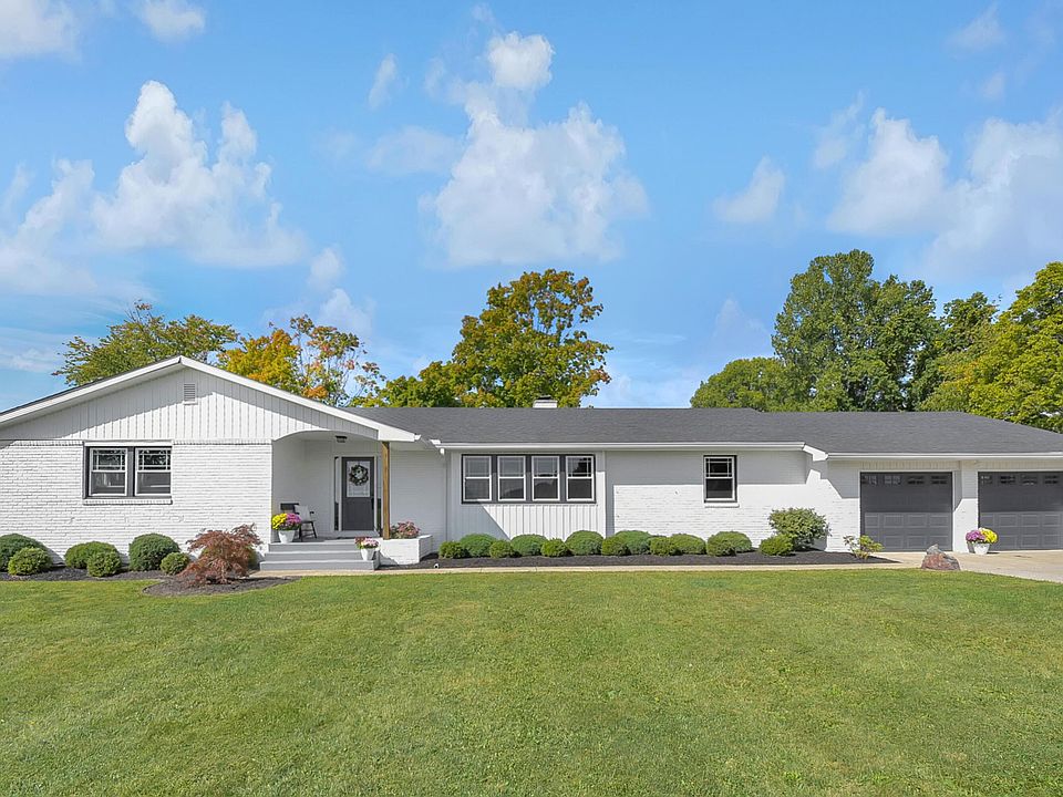 GORGEOUS remodeled 4 Bedroom, 3 Bath Ranch on 5 ACRES with 5200 sf LIVING SPACE. BIG WALNUT SCHOOLS. Luxury Plank Vinyl flooring! This is an ENTERTAINMENT PARADISE - OPEN FLOOR plan, backyard FARMHOUSE PAVILION, and FABULOUS BASEMENT, recently remodeled. Beautiful kitchen with white shaker cabinets, large island, granite countertop. Pendant lighting over island. Flows into shiplapped living/dining room with loads of NATURAL LIGHT. Beautiful WOOD FEATURE WALL and wood burning fireplace overlooks 3 seasons room, a WALL OF GLASS to enjoy your property and neighboring horse farm. Deck area, and charming back porch to sit and enjoy your morning coffee/nature. PAVILION has large porch area, TV mount, beverage fridge and area to house your toys! Too many updates to list. Agent related to seller.