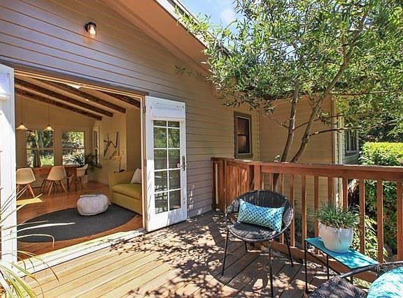 Urban farmhouse filled w/character! Updated in eclectic vintage style, open floor plan,vaulted ceilings, wood beams & skylights. Huge yard w/built-in bench surrounding a fire pit & detached Guest Cottage! Room for Goats & hens! You'll love this 3+, easy freeway access, just 15 miles to downtown SF!