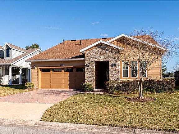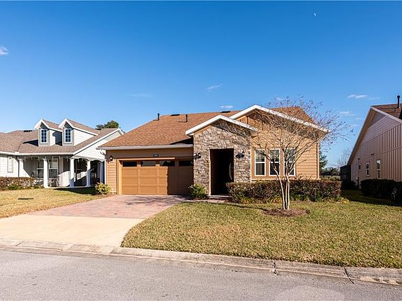 Gorgeous Cannes model located in Ocala Preserve! This home has 2 bedrooms, 2 bathrooms, a 2 car garage, and a bonus room! This split floorplan has the 2nd bedroom and bathroom at the front of the home. The bedroom features carpet, fan, closet, and pull down shades. The 2nd bath has granite counters, a tiled shower, and a linen closet. The foyer has 2 coat closets and leads to the tiled bonus room with ceiling fan and shutters separating from the main living space. The open great room is tiled throughout with a ceiling fan in the living room. The kitchen features granite counters, breakfast bar, dark cabinets, and stainless steel appliances. There is a dining area separating the kitchen from living room. The master bedroom has crown molding, ceiling fan, carpet, and gorgeous views! The master bath features a double vanity sink, granite counters, glass shower with a bench, linen closet, and large walk-in closet. The huge laundry room has cabinets and a sink area, as well as tons of space for a desk or folding station! The enclosed sunroom has carpet, ceiling fan and an amazing view of the farm area. No one living directly behind! Do not miss the opportunity to own this beautiful home with access to many amenities, and a restaurant inside the community. Just a short distance to the World Equestrian Center!