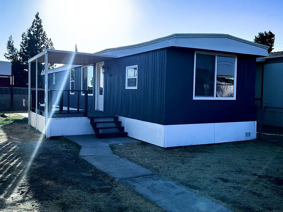 Welcome to your new oasis! This beautifully updated 2-bedroom, 1-bath mobile home combines modern convenience with cozy charm. Featuring an open floor plan, the spacious living area is perfect for entertaining or relaxing. Two generously sized bedrooms provide privacy and comfort, each with ample closet space. Also includes brand new plumbing, electrical, recess lighting, new and extended front porch, A/C & heating unit installed, quartz kitchen counter tops and water proof vinyl flooring. This mobile home is perfect for first-time buyers, downsizers, or anyone looking for a cozy retreat. Don't miss out on this incredible opportunity!