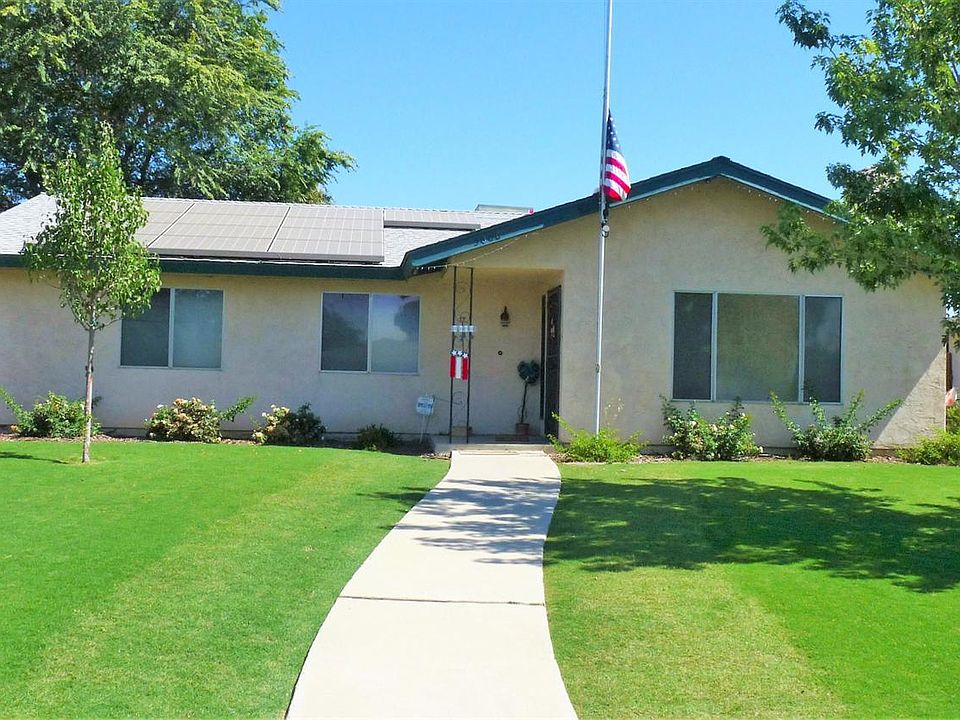Lovely SW Home! This home features Ceiling Fans through out, Brick Fireplace in Living Room, Totally Remodeled Kitchen: Corian Counter Tops, Beautiful Cabinetry & Hardware, Slate Floors, Black Appliances & 2 Pantries! Custom Log Cabin Style Den w/ French Doors, Floor to Ceiling Stone accents the Gas Fire Stove makes you feel like your at Tahoe Joes!! Seller is throwing in the SS BBQ Grill! Gas Line is under the Covered Patio. Front Landscaping was recently Revamped! Workshop Shed to Tinker in, Detached 2 car garage, Alley Access with Large Swinging Gate. Did I mention Solar Panels! Make your Appointment Today!!