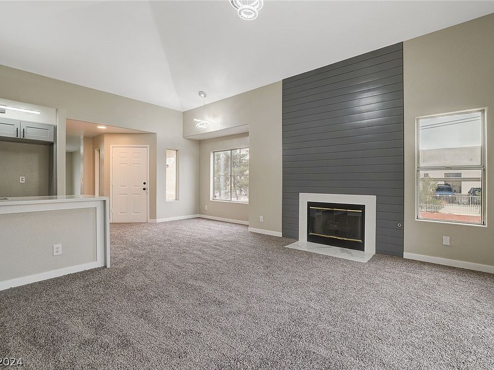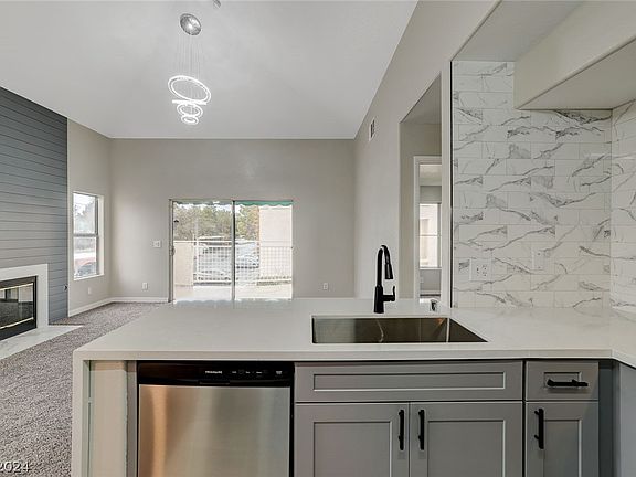 Exquisite 2-bedroom, 2-bathroom condo with a loft and a spacious balcony, showcasing a stunning remodel. Enjoy the serene view of the lush community green belt and pond. Every detail is brand new, from the stylish kitchen featuring a full-wall backsplash and a waterfall countertop to the refreshed bathrooms with new tubs, showers, and cabinets. The contemporary tile flooring accents wet areas, while plush carpeting adds comfort throughout. The living room boasts a vaulted ceiling and captivating lighting. Perfectly situated in a fantastic central location, just minutes away from the Las Vegas Strip, shopping, restaurants, the international airport, and more. Experience the convenience of a gated community with ample parking and additional amenities.