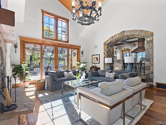 A magnificent Colorado estate nestled in Denver’s prestigious Cherry Hills Village, this extraordinary home embraces the best of both worlds, blending grand and inspiring architecture with serene surroundings in a tranquil country setting.The spacious sun drenched great room with soaring beamed ceiling is the heart of the home. The gorgeous wood burning fireplace adorning the north wall creates a cozy ambiance for an enchanting evening with family and friends. French doors open to the private stone patio that allows for the perfect flow for indoor / outdoor entertaining. The adjoining family room provides an intimate retreat with a fireplace and views of the gardens. The study includes warm wood work, custom built-ins, fireplace and large windows overlooking the front yard and curved driveway.The custom gourmet kitchen features a large island, Viking cooktop, Wolf double ovens, Subzero refrigerator and plenty of counter space for the ultimate cooking experience. A custom built-in banquette and dinning table provide the perfect gathering spot in the kitchen for casual family meals.The primary suite is a true retreat with a fireplace, western views of the mountains from the large windows or the intimate balcony, wet bar, and 6 piece bath with his and her water closets and walk-in closets. There are 4 additional ensuite bedrooms along with a 1419 square foot carriage house located above the 3 car garage. The 1 bedroom carriage house has a fully equipped kitchen, large living / dining area with gas fireplace and a full bath.