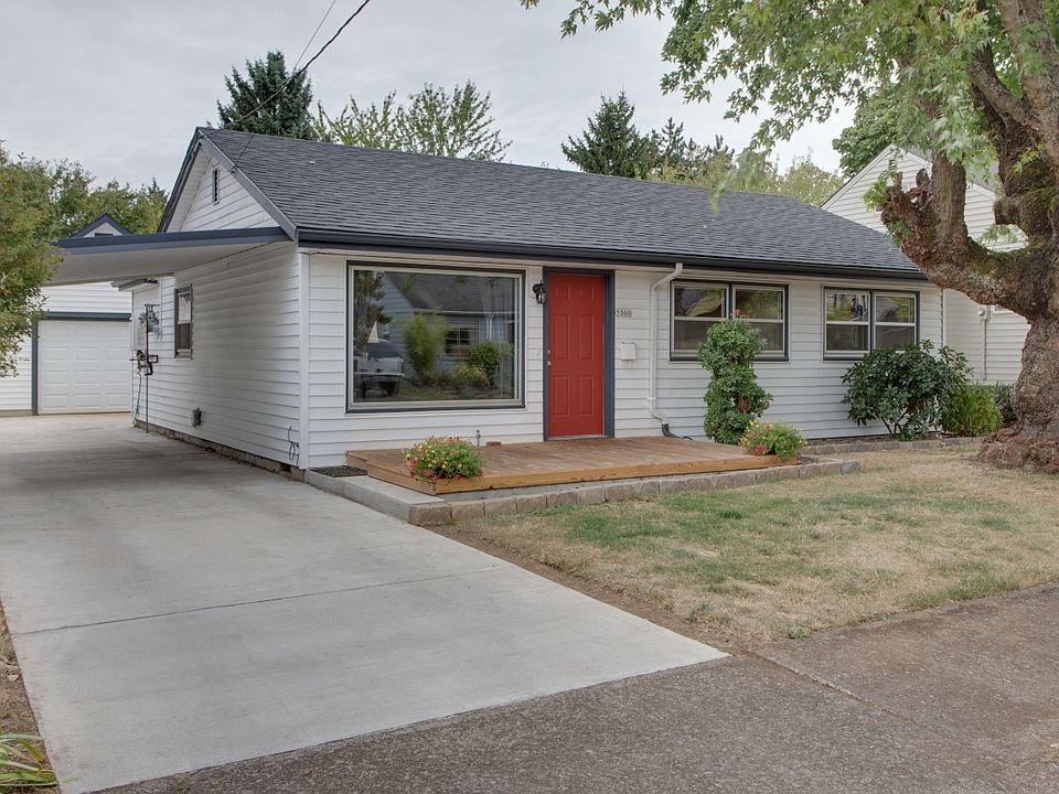 Charming mid-century ranch in Woodstock/Foster-Powell area minutes to Fo-Po dining and shops. Oversized lot with huge backyard and new garage/shop with tons of storage. New roof, high efficiency gas furnace, and high efficiency tankless water heater. Covered patio and barbecue area great for outdoor entertaining. Original, refinished oak hardwood flooring, remodeled bathroom, upgraded closet doors, and gas stove. Near bikeway, Woodstock Park, Mt. Scott Park, Cafes, Pubs, and Coffee Shops.