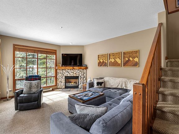 Nestled in the highly sought-after Trails Edge, this RARE 4-bedroom, 3.5-bathroom 1/2 duplex offers unbeatable ski-in/ski-out access and is just a 5-minute walk to the vibrant Village core! Step inside from your private garage or front door and be welcomed by a bright, spacious main level featuring vaulted ceilings and soaring south-facing windows, filling the home with natural light. The chef’s kitchen with a convenient eat-in bar flows seamlessly into the dining area, perfect for entertaining or enjoying family meals with direct access to the sundeck. Relax in the cozy living room by the gas fireplace, the ideal spot to unwind after a day on the slopes. The upper level boasts three bedrooms and two full bathrooms, while the daylight walkout basement provides essential extra space for multi-family stays. This lower level includes a family room, a fourth bedroom, a full bathroom, and access to a private outdoor patio with a hot tub—the perfect apres-ski retreat. Ample storage is available with the attached one-car garage and outdoor ski locker. Offered fully furnished, this property has no rental restrictions, making it a fantastic investment or personal getaway. GST is applicable.
