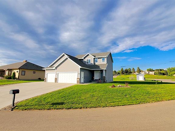 Check out this Gorgeous Rural Minot Home! This Two-story boasts 5 bedroom 3.5 Bath and sits on a half acre lot. Features include Solid core wood doors and beautiful trim throughout, granite counter tops matching throughout. Gorgeous kitchen with gas range and island. Upstairs you will find 3 good sized bedrooms and laundry room conveniently located with primary rooms. Master suite has beautifully done jet tub and tiled shower combo with dual vanity. Plenty of storage throughout. Mud room on entry from garage, humidifier system on furnace, garage is finished and heated with floor drain, equipped with hot and cold water sink perfect for many North Dakota uses. Main floor bedroom/den makes the perfect office with half bath on main as well. Basement is finished with wet bar and beautiful gas fireplace, a good sized bedroom and work out room. Side yard has concrete pad parking for RV/Boat with electric plug-ins conveniently placed. No HOA regs to worry about keeping your toys at home. Irrigation system does entire yard with smart app controls via phone. Trex decking on front and back decks. Comes with large shed with concrete pad as well as playset ready for the kids. Property is located adjacent to walking/biking trails west of Minot. Amazing Area just minutes from town! Call an agent to schedule a showing today!