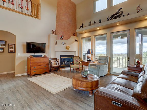 This is a stunning 5 acre horse training facility perfect for all equestrian disciplines, dotted with Pinon Pines, natural landscape and plenty of shade for the horses.Beautiful great room accesses a wrap- around covered deck for views of the barn area, distant mountains and more land graced by Pinon Pines. Entertain guests at the Great Room Bar and enjoy sitting by the outdoor fireplace on cool Prescott evenings. The cook's kitchen is complete with JennAir & Samsung stainless steel appliances, large island to enjoy morning coffee, tons of counter space & more cabinet storage than you may ever need.