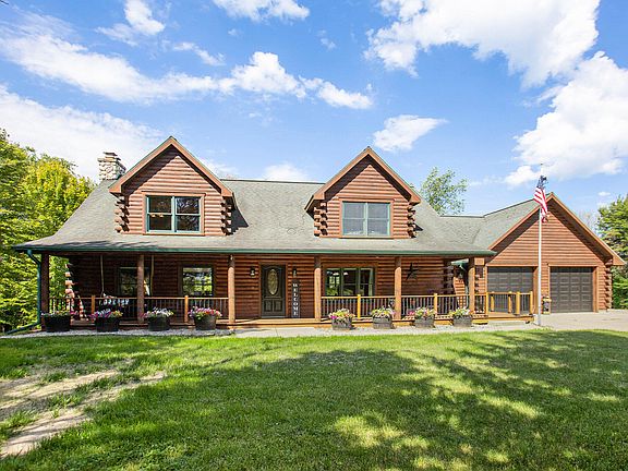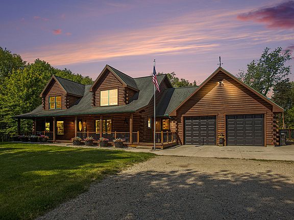 Indulge in the charm of log home living complemented by a pole barn, nestled on 12 acres. Recent updates have enhanced the allure of this property. 2024: Freshly stained exterior of the home, painted exterior doors, new screens installed in the covered deck, upper washing machine, and new central vacuum hoses/accessories. 2023: Upper-level carpeting, replaced deck boards and railing, upgraded pole barn steel siding and windows, new kitchen refrigerator, pumped septic tank, installed a new well and tested water, installed water conditioner. 2021: Replaced the water heater and furnace, upgraded kitchen flooring. Experience the rustic and modern comforts in this meticulously maintained retreat. Additional features: Generator hook-up, Heatilator wood burning fireplace, Wired for hot tub.