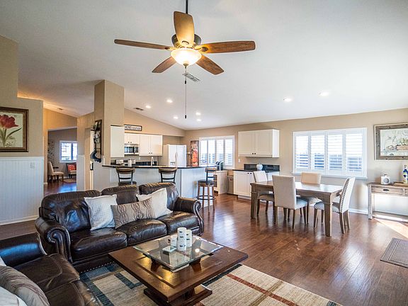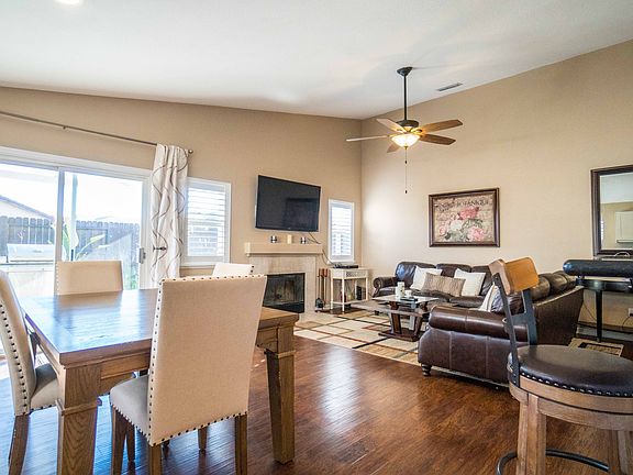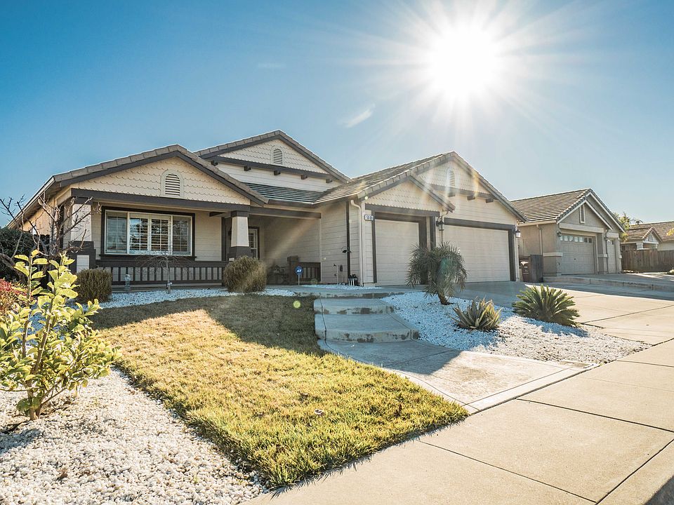 This 4 Bedroom and 2 Bathroom home offer 1,972 Sq. Ft of living space & a 6,930 Sq. Ft lot. This single story home was Built in 2000 featuring a 3 car garage. Some of the upgrades throughout this home include neutral paint, plantation shutters, ceiling fans, decorative woodworking around windows/doors, beautiful laminate floors and wainscoting in all main areas! Upon entering you are welcomed with a formal living and dining room with vaulted ceilings and views of the front yard. GORGEOUS completely renovated kitchen offers white cabinets, black granite counter tops, oversized farmhouse sink, stainless steel appliances, spacious center island with breakfast bar seating and opens to the family room. Cozy family room with wood burning FP. Spacious master bed grants access to the back & laminate flooring. Serene backyard & low maintenance landscaping - storage shed, dog run, over 10K in concrete work & two covered patios! Just minutes from schools, freeway access and local shopping.