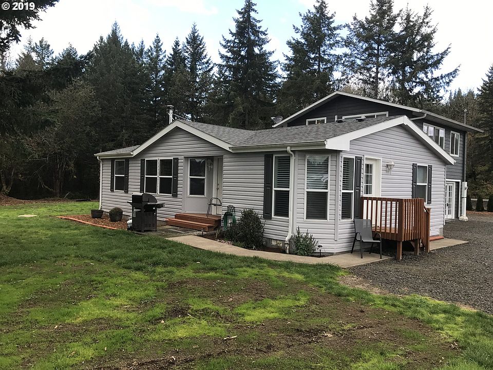 Country living on 1 acre 2001 DBL Wide Home 3 bed, 2 bath with wood stove in living room. 2 car detached garage with finished upper level for storage or office. Small back deck, plenty of room for toys, RV Ect. Lots of updates must see to appreciate. Close to Spirit Mt. Casino and the beach.
