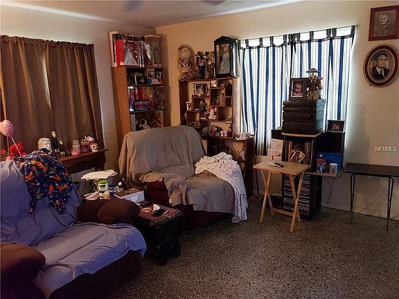Holiday Heights!! Great room floor plan. Terrazzo floors throughout. Close to shopping and dining. Enjoy the fenced back yard from the generous sized screened porch. Extra storage in the storage shed in the back yard. New wall air conditioning unit. 1 carport