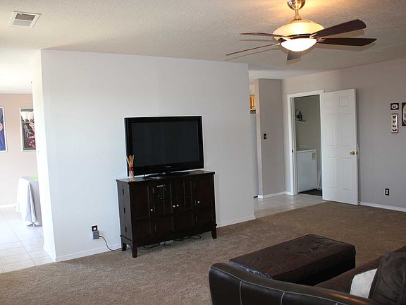 Pride in ownership is seen in this upgraded 3 BR/2Full Bath home located in Rio Rancho at an excellent price. This home features brand new carpet, fresh new paint, new bathroom counter tops, and a 2 car finished garage. The kitchen has a spacious custom pantry for dishes, table linens and much more. Experience the landscaped and maintained front and back yards with such highlights as: flowering trees and wisteria vines, annual bulbs, rose bushes, and wildflowers, with room to spare to put in your very own home garden or orchard. Dog lovers will enjoy the large custom dog run with entrance to garage and home through laundry room which separates your pets from your flowers and plants. Home comes with the following: dishwasher, stove, microwave, refrigerator, washer, dryer and small garage chest freezer.