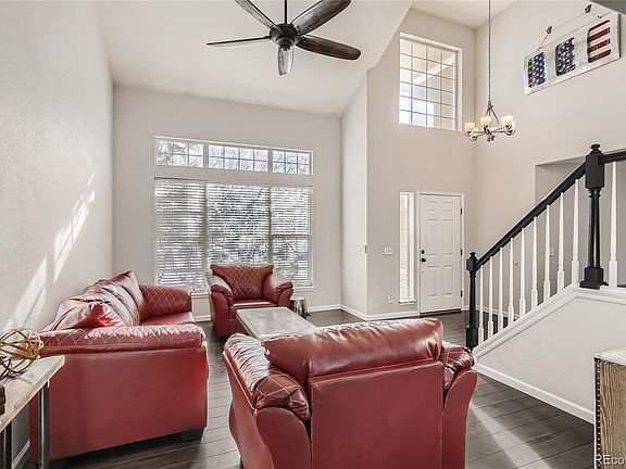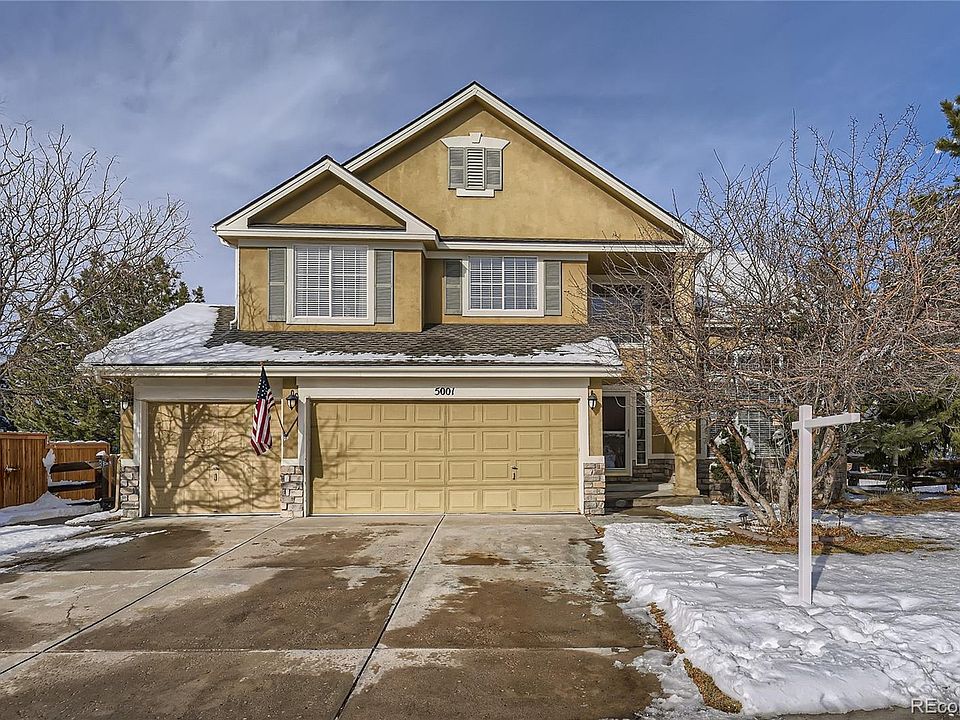 Located in the popular Meadows area of Castle Rock, you will enjoy almost a 1/3 of an acre lot parallel to greenbelt and walking trails! Enjoy 3-car, south facing garage for easy snow melt. Home has a grand entryway with vaulted ceilings. There are hardwoods throughout. The large formal living room includes three front facing windows and a lot of natural light. You'll also enjoy an eat-in kitchen with bay window AND a more formal dining space for those special holiday parties. Kitchen also includes granite counters, stainless steel appliances and a gas stove/oven. This popular open and circular flow floorplan is perfect for entertaining! The family room includes a gas fireplace and great views of yard, as well as Castle Rock's ridge. There are custom lighting fixtures and fans throughout the home. Upstairs you will find an oversized primary bedroom with 5-piece ensuite that was recently updated, and includes a custom barn door, butcher block countertops, decorative sinks and fixtures, a stone pan-poured shower, more great views and a walk-in closet. All four bedrooms upstairs include hard wood floors and custom closet systems.