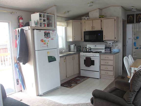 F120:An outstanding lot, tucked behind privacy bushes, well groomed yard and a walk ways leading to the shed. The shed is neatly tucked in the corner and a nice deck to spend the summers. There is a fire pit and nice size trees in the front. The inside has an open kitchen/living room floor plan but with much room to move. Located on one side are two separate dorm style bunkrooms. On the other end of the trailer is a full Master with a spacious bathroom.