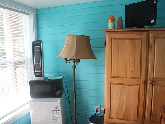 LOT ONLY: F76: This lot is a nice size lot that has a slot for an RV slot and hookup. It has concrete patio with trees, gardens and hedges surrounding the property. The dwelling that sits on the property is one bedroom bunkhouse connected to the shed. There is also raised garden beds, and a fence to enclose the lot. Water/Sewer/Electrical hookups. Electric in the bunkhouse.