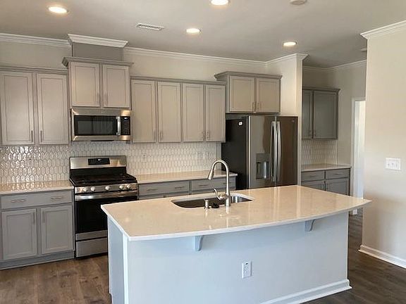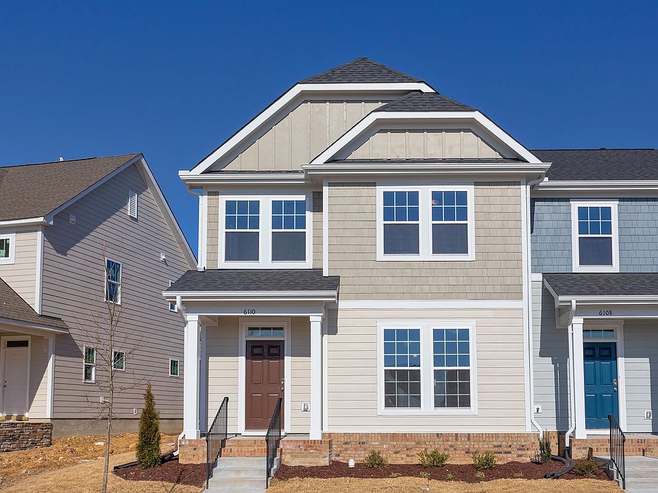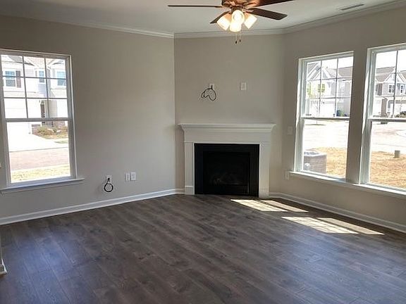 Sage design, open 1st fr, end unit with fireplace. Stylish kitchen features quartz countertops, stainless appliances, gas cooking, island, pantry. Handy drop bench @ rear door. Owner Suite features trey ceiling, great closet, very roomy bathroom. Enjoy outdoor rear patio with 6' privacy fence. 1 car garage with parking pad adequate for second vehicle. Lifestyle community with extensive amenities: pool, clubhouse, gym, walking/biking trails, kayak launch, dog park, playground. Town Center with cafe/pub, coffee shop, pet grooming, bank, childcare facility, etc. Home under construction, estimated completion August. No investors, community capped. FINAL OPPORTUNITIES, in close out of last homes.