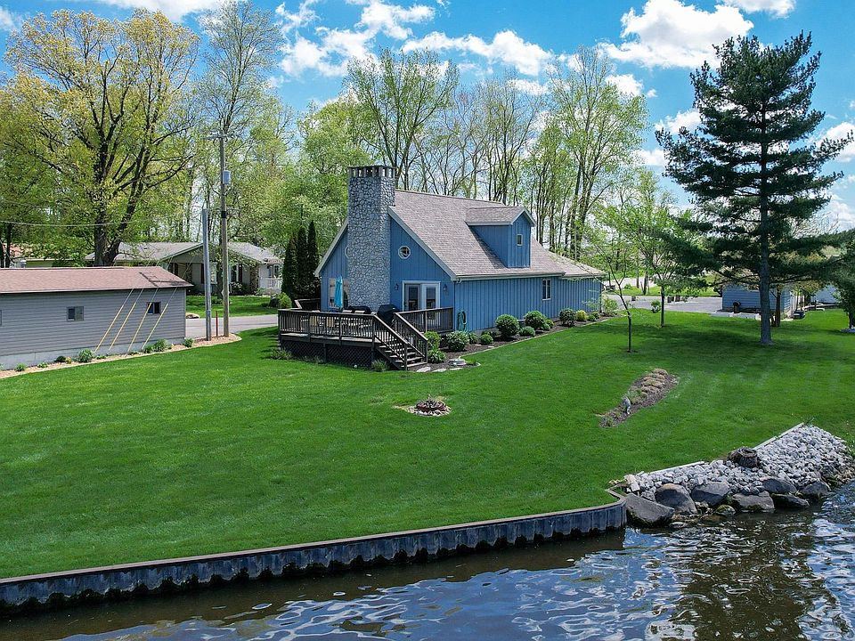 A perfect set up for lake living! Setting on 2 lake level lots with 100 ft of frontage that includes a steel sea wall, docks and a permanent covered electric boat lift. Step inside to a brand new kitchen with granite counter tops and a tile back splash. An open concept floor plan is ideal for entertaining. The living room features cathedral ceilings, a stone fireplace and a sliding glass door that leads out to the lakeside deck. Inside offers 3 bedrooms, 2 bathrooms, a master suite with a walk in closet and 2 main floor bedrooms. Ample storage offered from the 2 car garage and the 1 car garage. A beautiful lake level lot and an charming updated lake home. Lake life awaits!!
