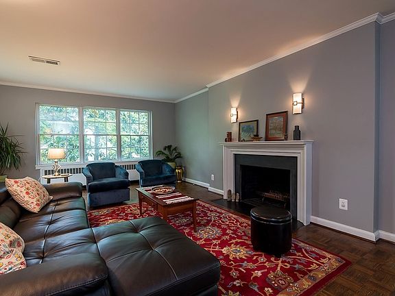 Artfully designed to take maximum advantage of a gently rolling landscape, this circa 1948 detached home at the corner of Loughboro and Glenbrook Roads in NW DC's "Kent" neighborhood is prominently perched on a corner facing a quiet residential street. Situated in one of the most beautiful tree-lined neighborhoods in NW DC, this home is sun-filled and features refreshing views of nature in all of its green glory from every window. Highlights of this home include the best of traditional design and modern updates throughout as well as a fantastic location close to shopping, Sibley Hospital/Johns Hopkins,and convenient commuter routes into and out of DC along the MacArthur Boulevard and Mass Ave corridors. From the street, a curving stone walkway leads to a covered entry and into a central foyer where classic details contrast with clean, minimalist lines. A spacious living room with decorative fireplace frames a view of a stunning, decades-old magnolia, visible even from the adjacent formal dining room that is suitable for a banquet or an every-day family meal. A recently updated kitchen features luxury finishes and just enough table space to enjoy your favorite morning eye-opener. A few short steps lead to the office/library of your (and this writer's!) dreams where you can immerse yourself in the beauty of paneled walls, beamed ceilings, a decorative fireplace, and bookcases galore! In contrast, the serene modernity of the main level master suite is just one more of the many surprises this property holds in store for you. Back in the living room, French doors lead to a four-season sun room with decorative fireplace, a rustically elegant fieldstone floor, and windows galore with views of the large and private slate patio/terrace (where the entertainer in you can indulge all your party-planning fantasies or at the very least, your inner two-martini gardener!) ROOMS HAVE NOW BEEN PAINTED IN NEUTRAL COLORS. Upstairs, three (3) bright and spacious bedrooms are centered on a masterful hall bathroom that lends luxury to your every day. Downstairs, a lower walkout level features a mudroom, interior access to a one-car garage w/ utility and storage areas, plus a spacious family room with electric fireplace that offers even more gathering space for family and friends. This home's connection to nature combined with both cozy and clean-lined interiors evokes an inspiring depth that is difficult to pinpoint and is rarely found in such a convenient location. This property is professionally managed and is available for 1-2 years. Owner transfer clause required and pets case-by-case although no cats, please (due to family allergies.)