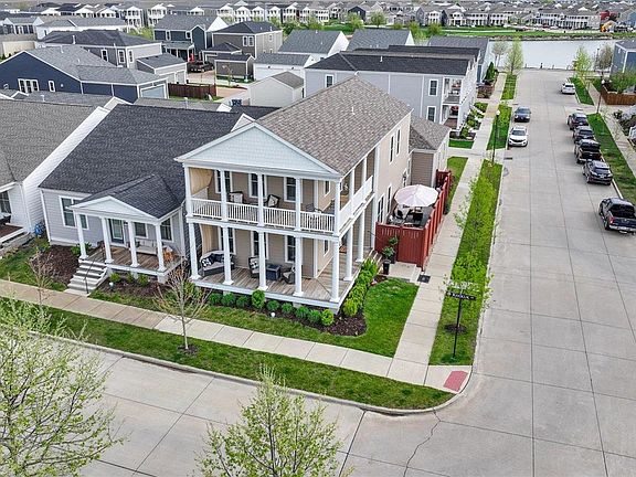Sunsets are beautiful from your wrap around porch or balcony. 'Beach District' home exquisite design, style & details! Open floorplan ~ great room with wall of windows - enjoy the water view, cozy gas fireplace. Gourmet kitchen, gas cooktop, dual gas ovens, cabinet micro, custom cabinets, lazy susan, slow close, deep sink, under cabinet lighting, glass backsplash. Breakfast nook with gorgeous lighting. Main level owners suite, dual closets, upscale bath, oversized tub & separate shower. Convenient laundry with cabinets. 1/2 bath. 2 additional large bedrooms and common bath in the upper level plus a bonus room, huge storage closet. Patio courtyard, fenced for privacy (hot tub negotiable) 2 car oversized garage plus a parking pad for friends to visit & park their golf carts. Lower level - egress window, rough in, Dual HVAC units. Relaxed lifestyle in desirable community ~ Summer concerts, events, lakes, fishing, trails, parks, pools, lazy river, restaurants and stores.