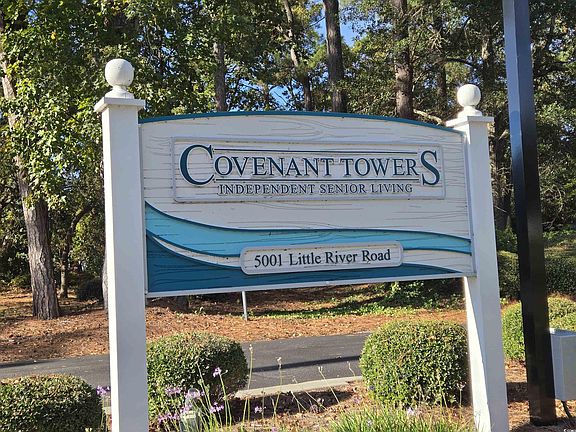 Enjoy the Good Life in your Covenant Towers Home! From this first floor home you can walk your "fur" buddy out the patio doors! Your new home has spacious living room plus two roomy bedrooms with ensuite bath on either side for privacy. Both bedrooms have roomy walk in closets with many shelves for storage.This home also has full size washer/dryer for your convenience. The gallery kitchen offers good cabinet space and less than 6 month old dishwasher & refrigerator. Range only several years old. Both bedroom windows have plantation shutters and patio door has upgraded pull-down shade.Covenant Towers is a very desirable 55+ community near Myrtle Beach's Golden Mile and close to the Beautiful Atlantic Ocean. With one monthly fee you enjoy free 24 hour security, all utilities, a daily meal, weekly housekeepiing, & linens, fitness center, swimming pool, hair salon, library & pest control. DONT MISS OUT ON THIS GREAT PLACE TO CALL hOME!!!!!