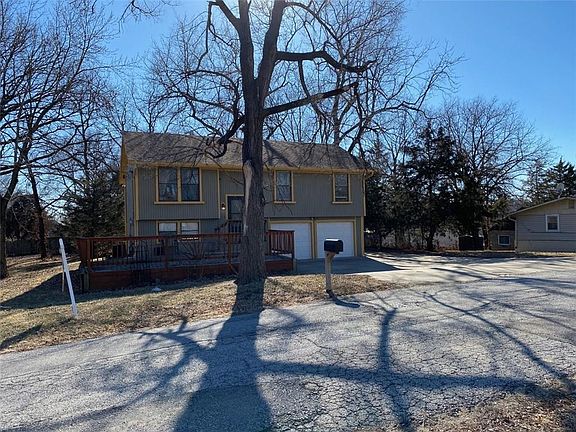 Nice split entry with 2 car garage plus 3rd car driveway, (great additional car, RV, or boat).  Large decks front and rear.    Storage shed under rear deck.  New kitchen flooring, carpets recently cleaned.  All bedrooms freshly painted.  Exterior painted in 2021.  All appliances stay with sale including the washer and dryer.  Close to schools, major highways, Worlds of Fun, Ford Plant, and convenient shopping.