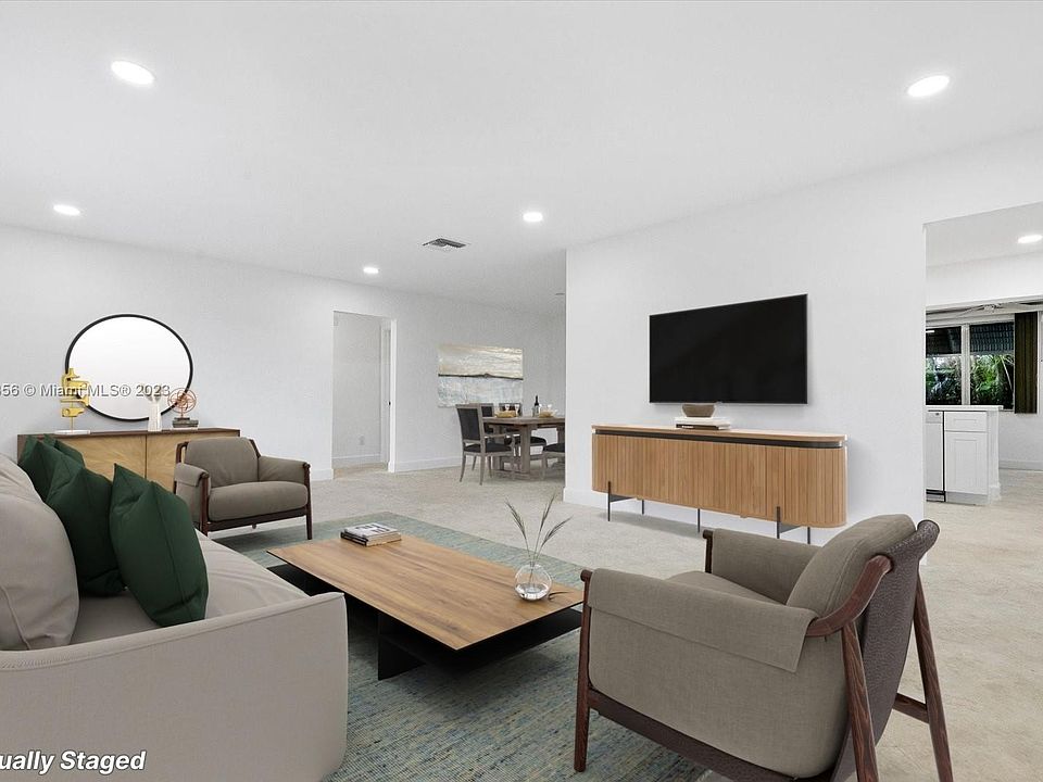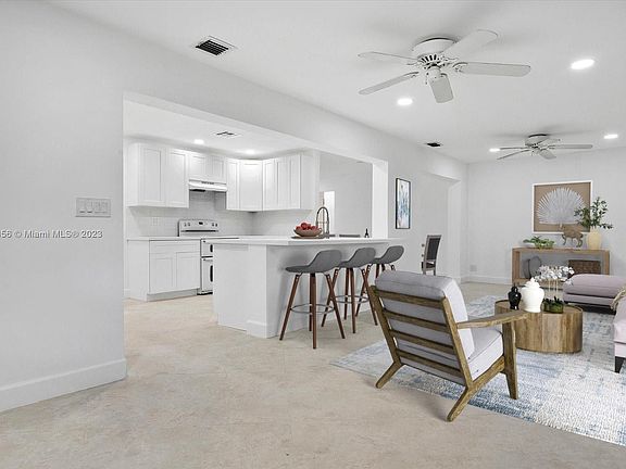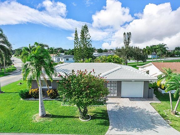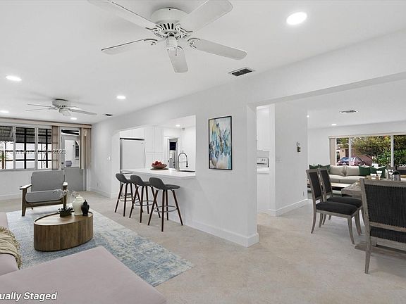 Beautifully renovated 2 Bedroom 2 Bathroom in the 55+ community of Mainlands 6. This spacious home is on a corner lot with only one house neighboring it and none behind it! It features a BRAND NEW kitchen, 24"x24" tile throughout, a huge family room, and a large covered patio right off the family room. The newly renovated kitchen has wood cabinets, quartz counters, huge island, and is open to the family room. There are new recessed LED lights throughout, new custom closets, freshly painted and the garage floor has a new coat of epoxy finish. You'll truly appreciate the attention to detail paid by the seller. At least one resident must be 55+.